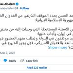 س1/ يوجد موظفون في الدولة ويُطلب منهم الحضور في مظاهرات تندد بالعدوان الأمريكي، فهل يجوز الخروج في التظاهرات؟…— Alaa Alsalem (@alaaalsalem24) March 7, 2026