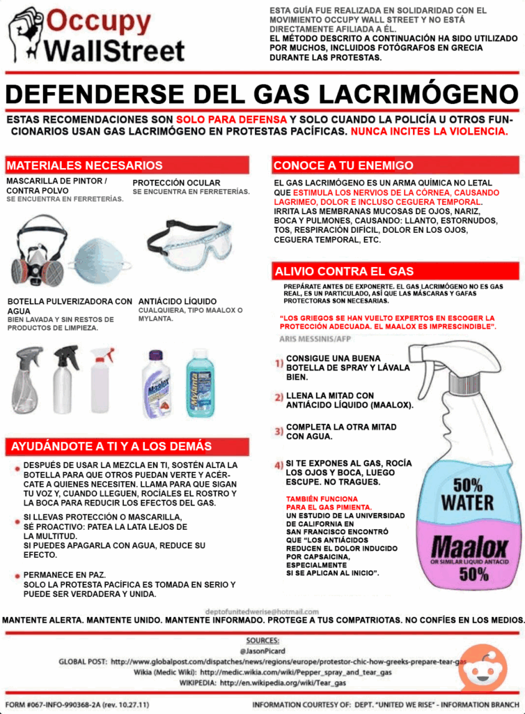 Información útil para protegerse del gas lacrimógeno o para mitigar los síntomas